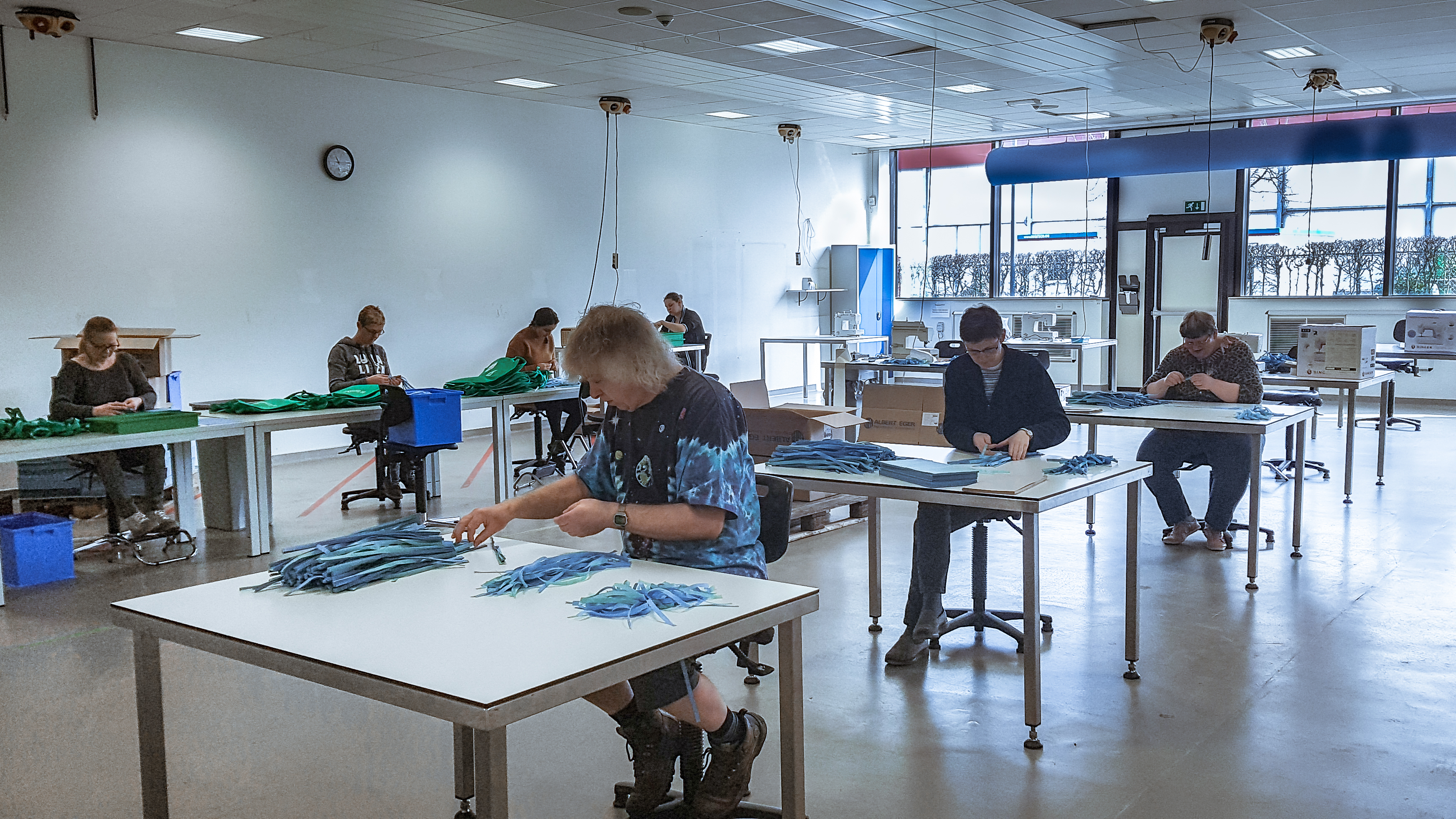 Wij blijven volop materiaal klaarmaken, in totaal voor minstens 50.000 mondmaskers.