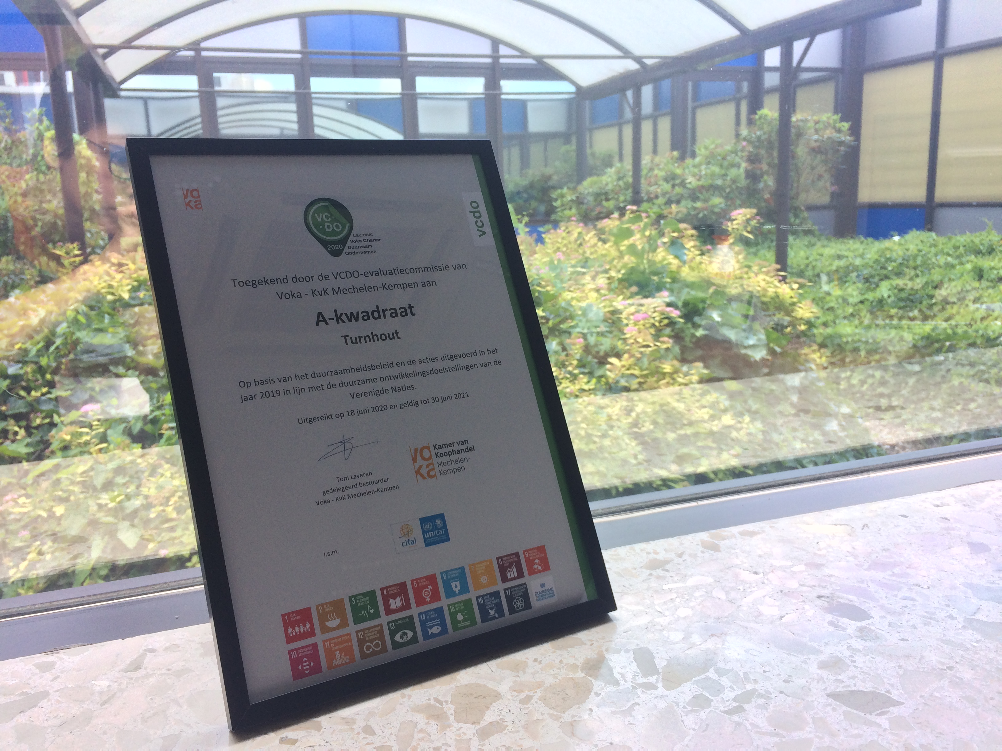 Later op het jaar ontvangen we ook het internationaal gevalideerde Unitar-certificaat 'SDG Pionier', omdat we de afgelopen drie jaar acties hebben gedaan voor elk van de 17 Duurzame Ontwikkelingsdoelen. Dit certificaat wordt in 2020 voor het eerst uitgereikt aan een honderdtal Vlaamse organisaties. We zijn trots om bij die groep van SDG-pioniers te horen.